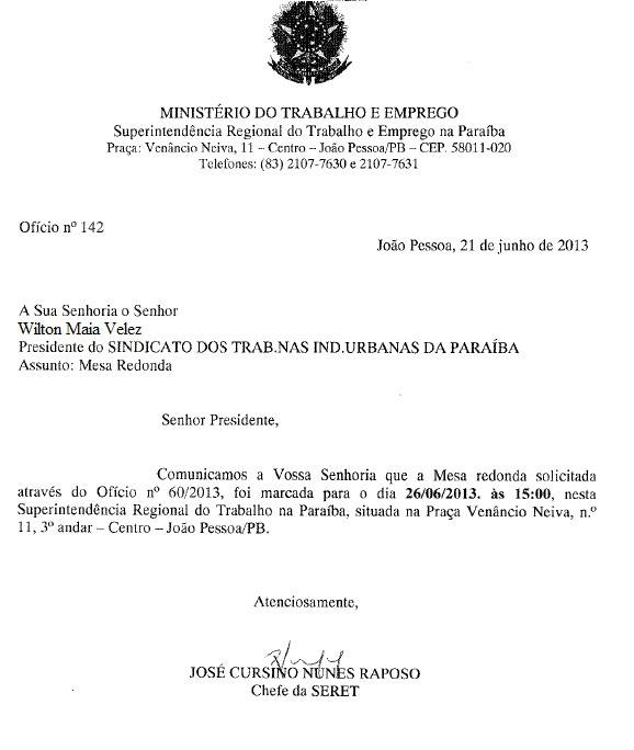 A Superintendência Regional do Trabalho e Emprego na Paraíba marcou a mesa redonda marcada para próxima quarta-feira, 26/06 as 15h00min na sede da Superintendência Regional do Trabalho e Emprego na Paraíba em João Pessoa.